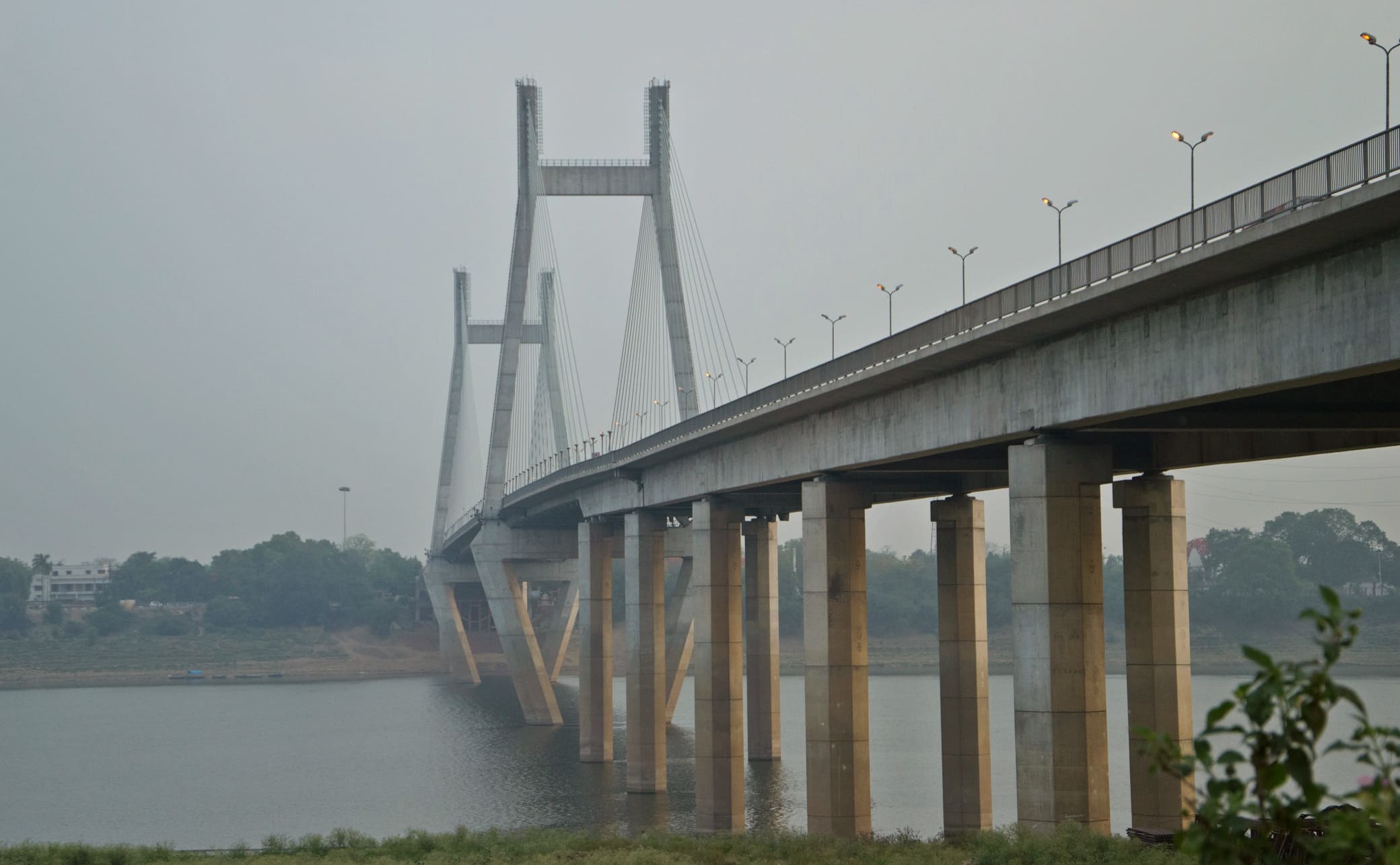 Stretching about 1,510 metres with a main cable-supported span of around 260 metres, the bridge’s tall pylons and steel cable fan make it one of India’s early and prominent cable-stayed bridge projects.