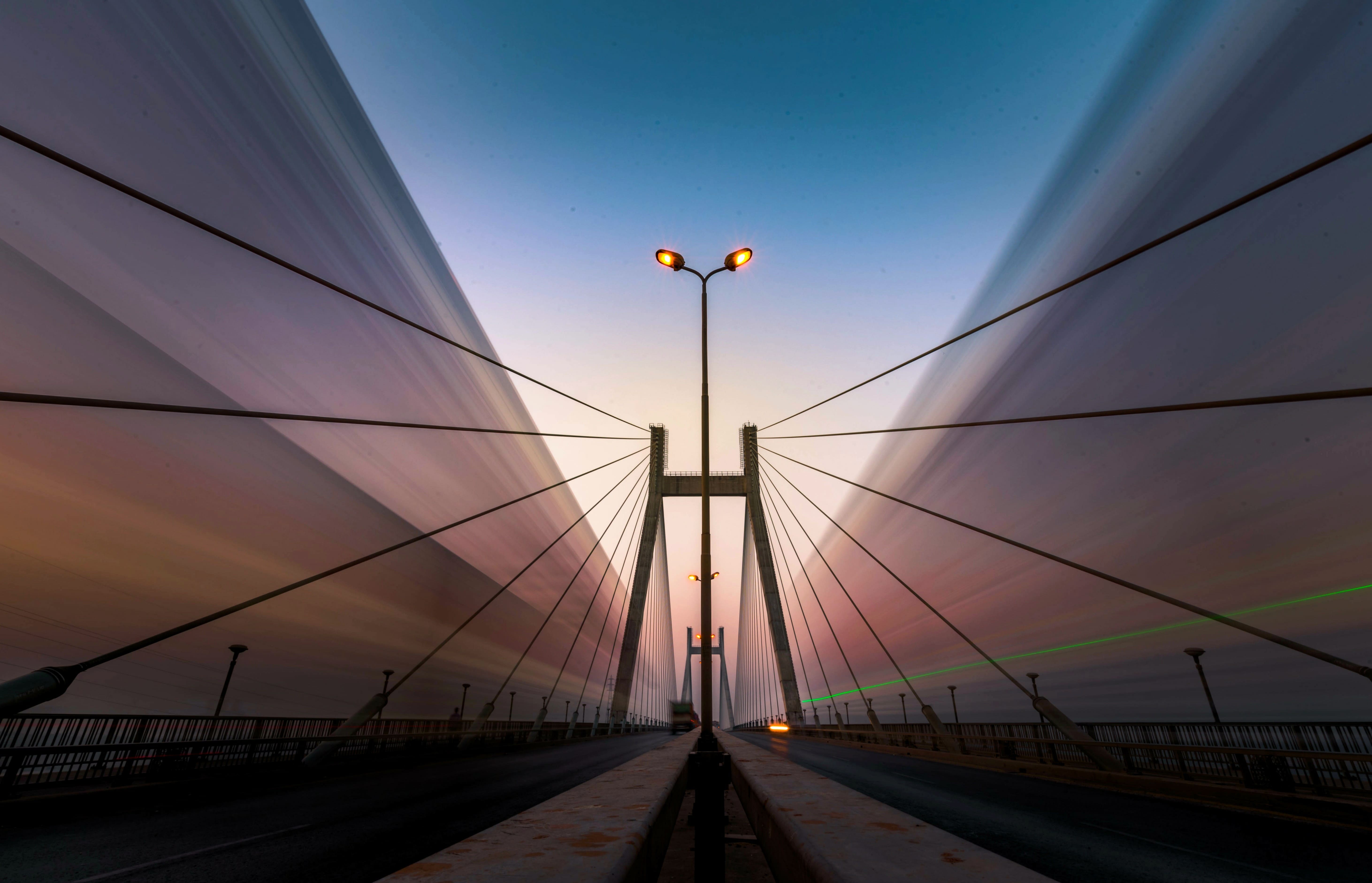 Concrete anchor spans at both ends and robust foundations within the riverbed give the bridge strength and stability against wind, traffic load and river flow.